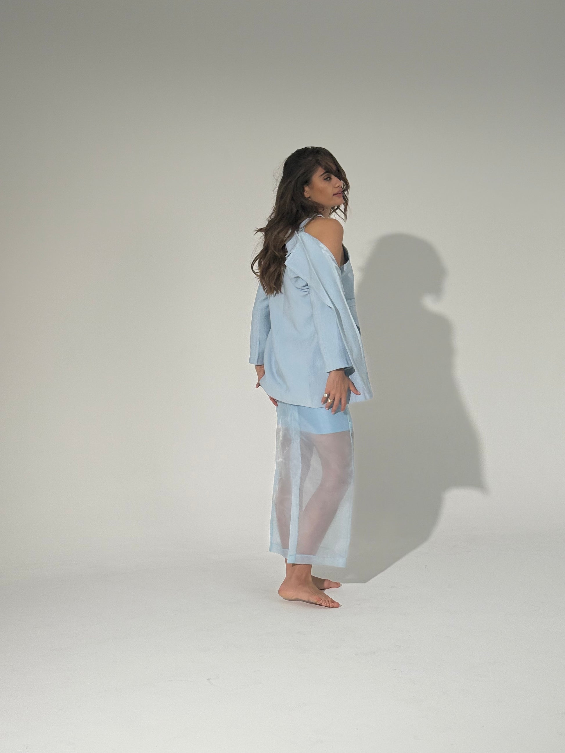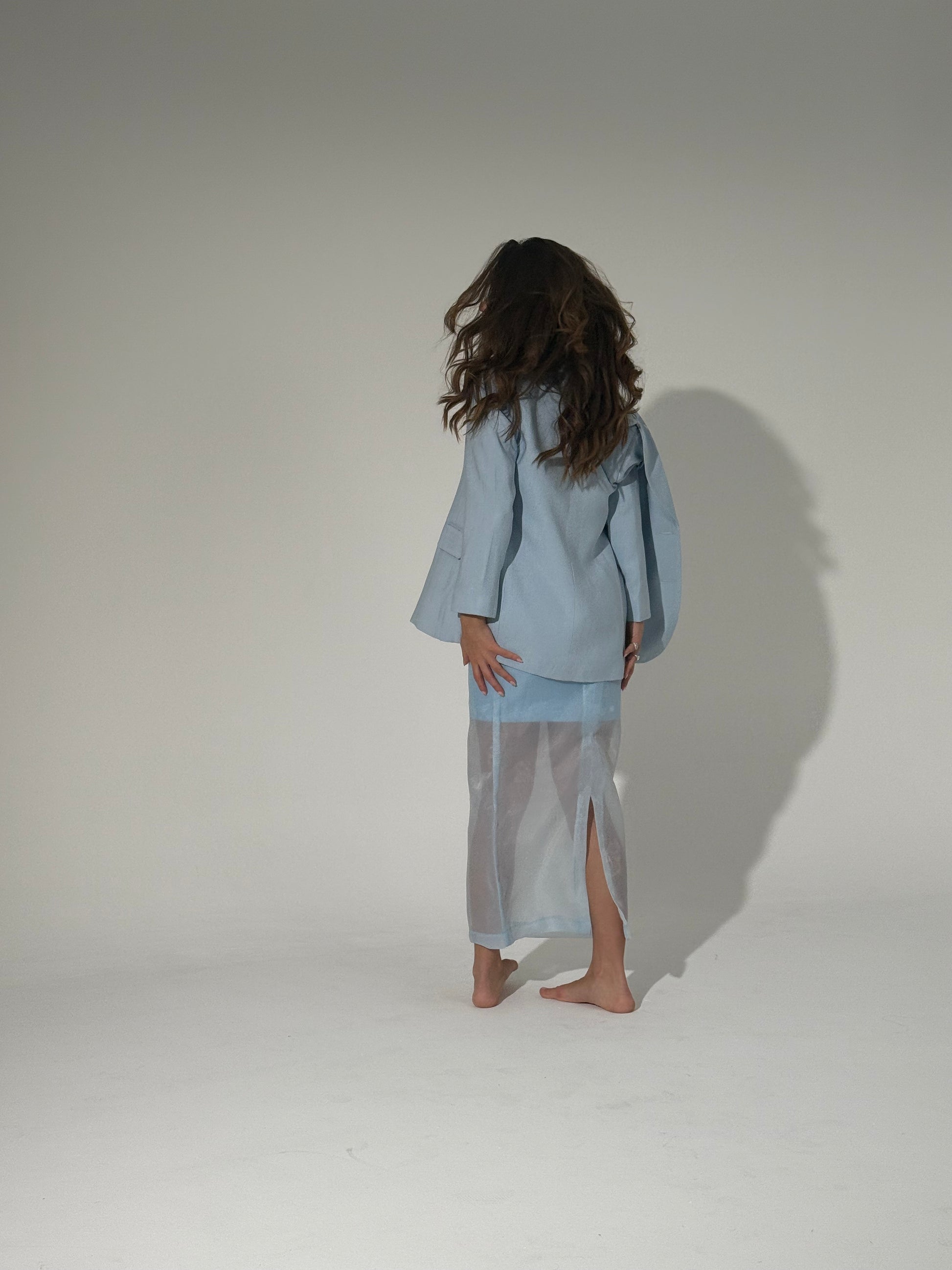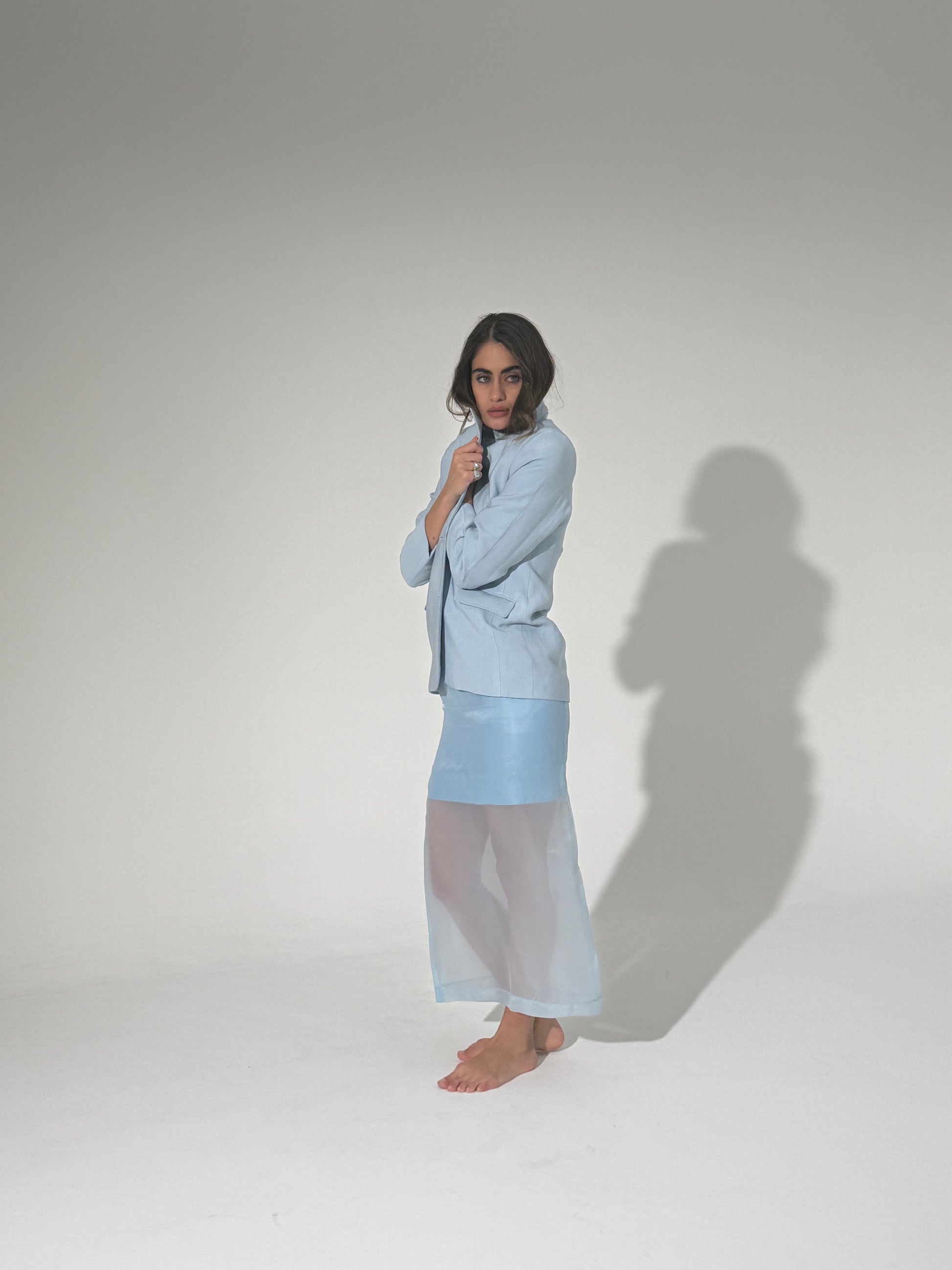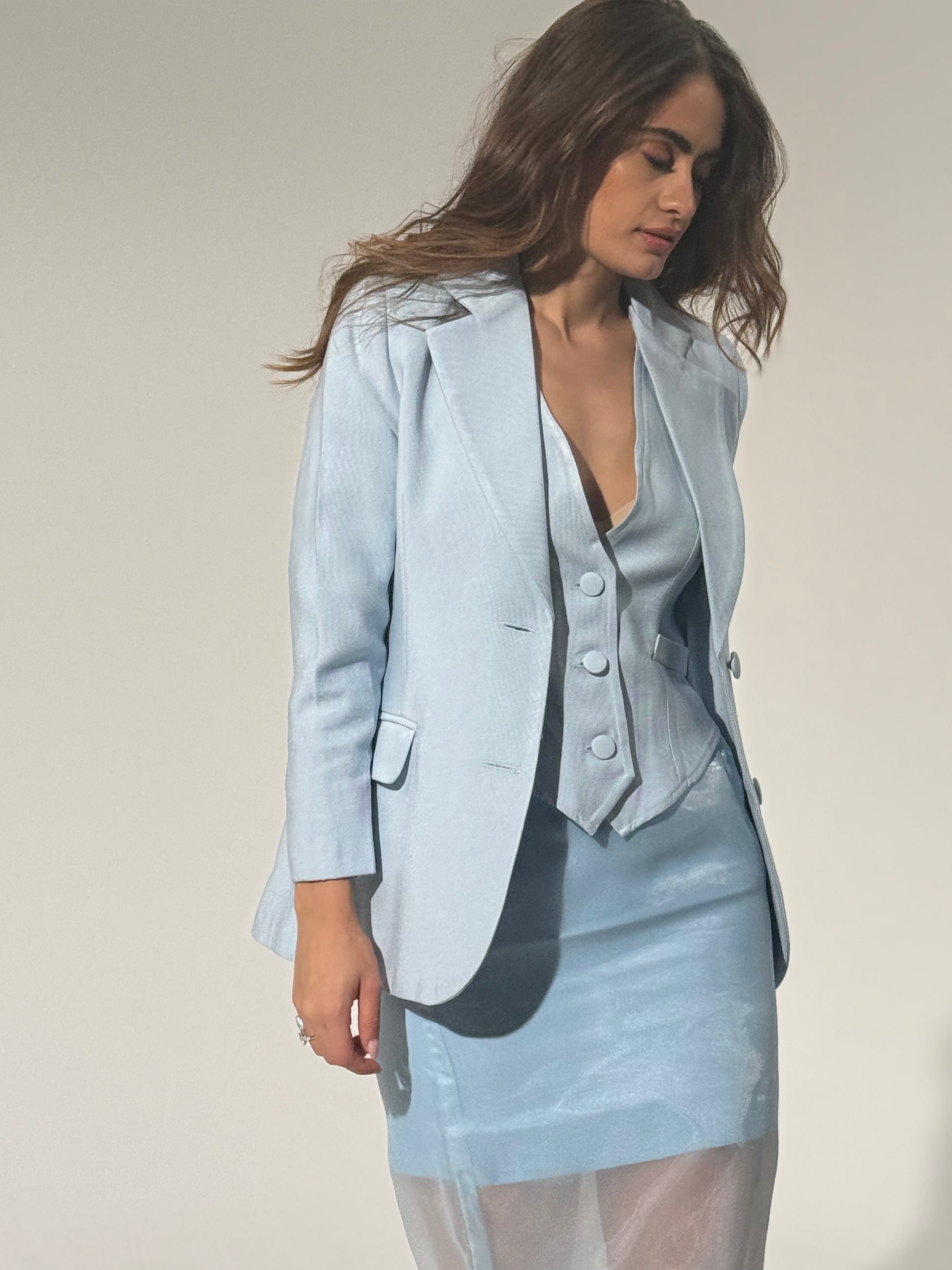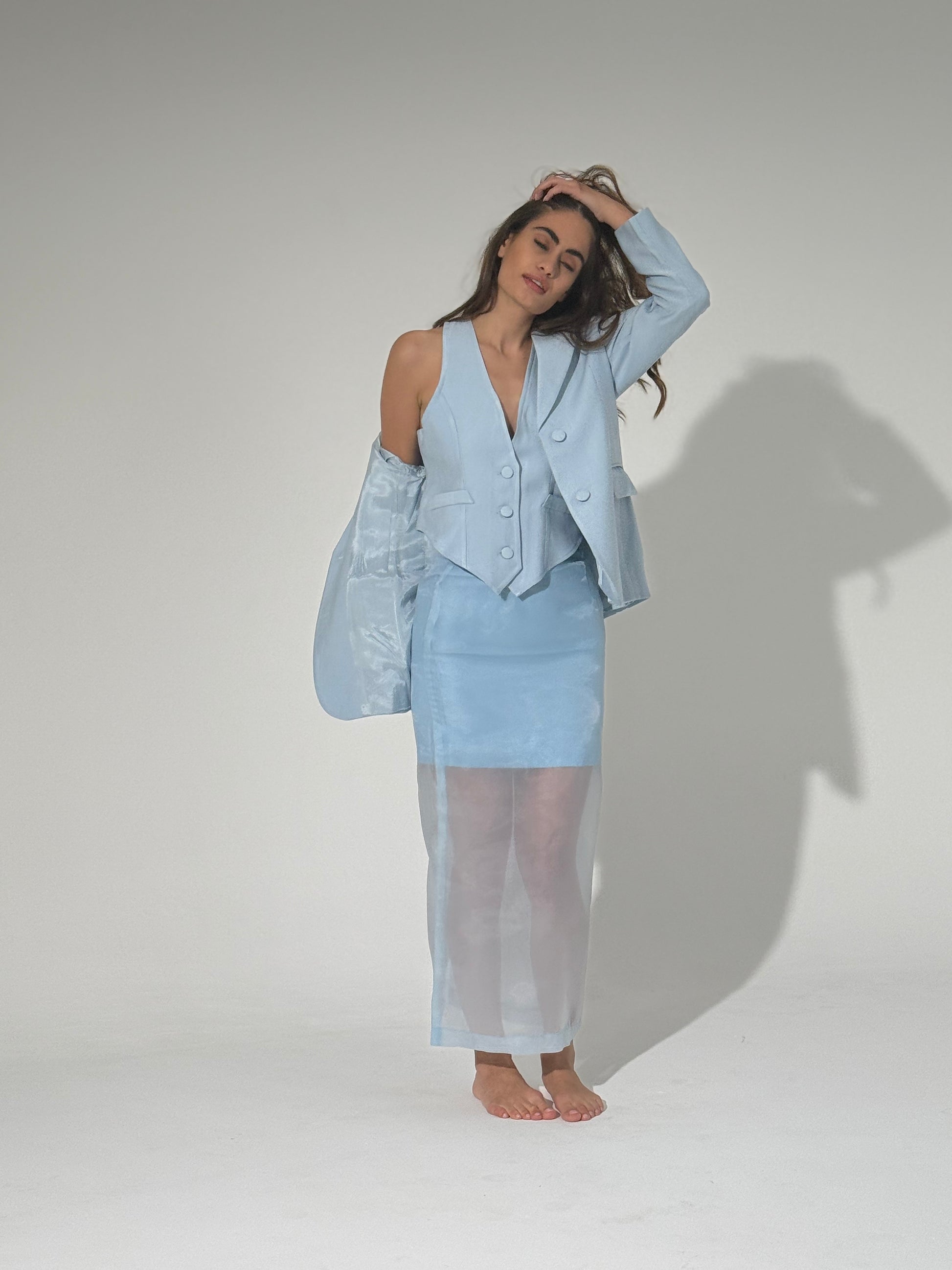 Three pieces set comes in sleeveless buttoned vest, long sleeve blazer, long skirt